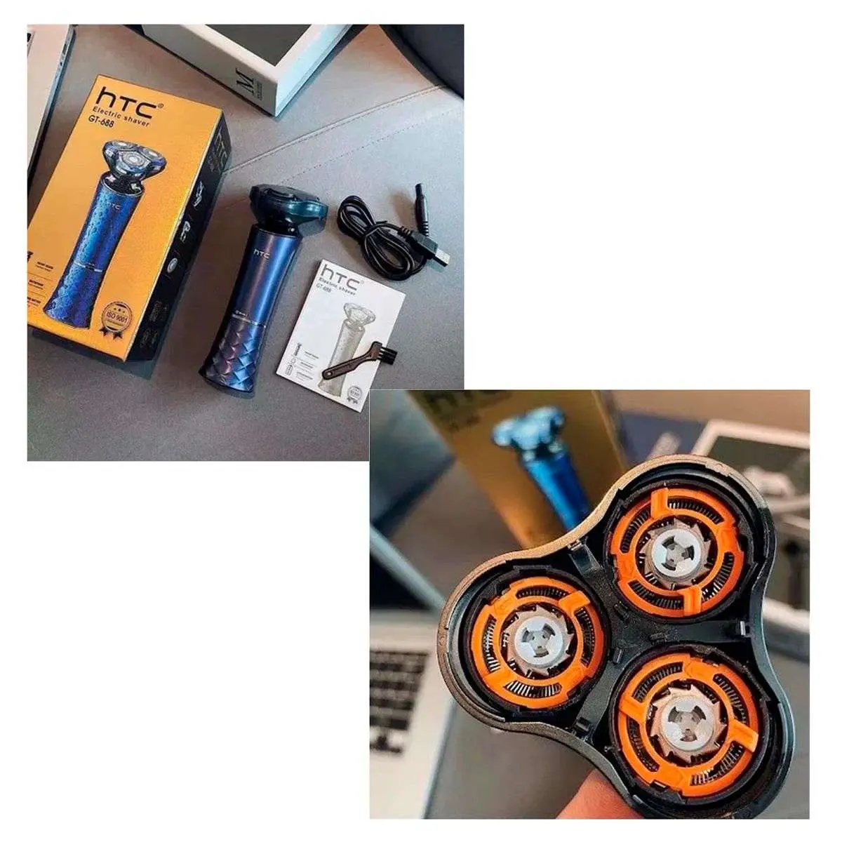 Práctica y cómoda, esta afeitadora inalámbrica HTC GT-688 está diseñada para lograr un afeitado eficiente y confortable. Su funcionamiento sin cables brinda mayor libertad de movimiento, ideal para el uso diario en casa o para llevar de viaje. El diseño en color azul le aporta un estilo moderno.Afeitadora de doble hoja inalámbrica con cabezal de corte flotante 3D, rotación de 360° que se adapta perfectamente al contorno de la cara.